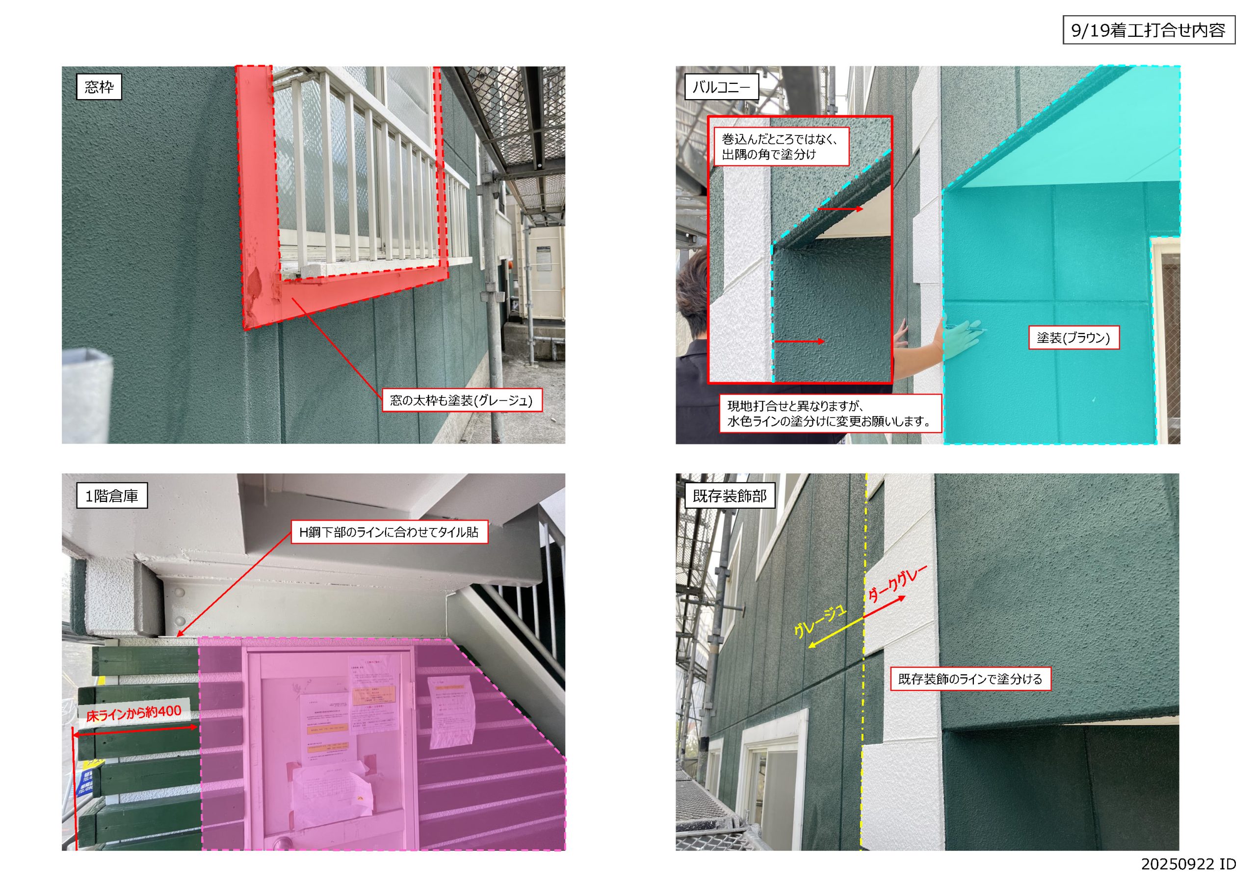 上図の様に、打合せ後はお互いに齟齬が無いよう再度資料を共有し、本格的に着工に入っていきます。