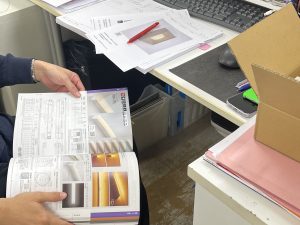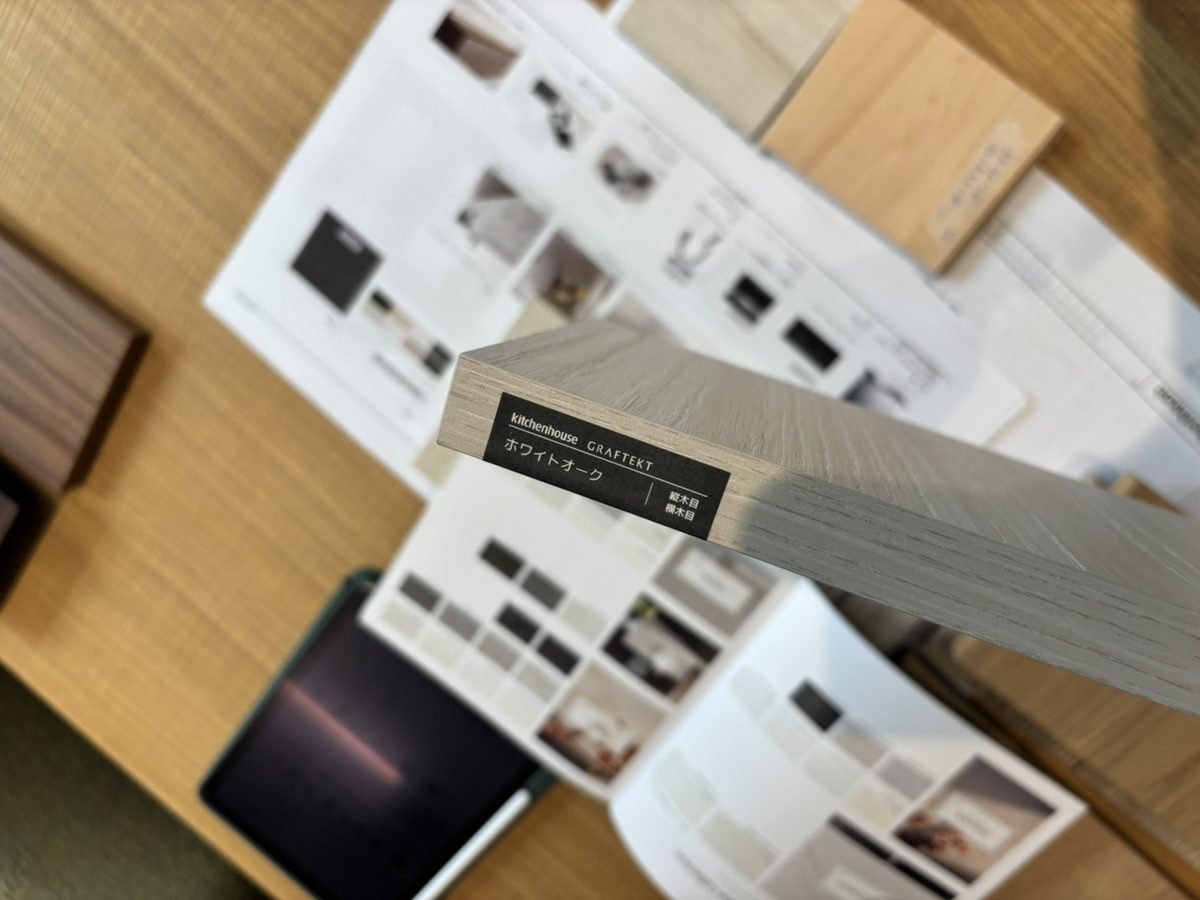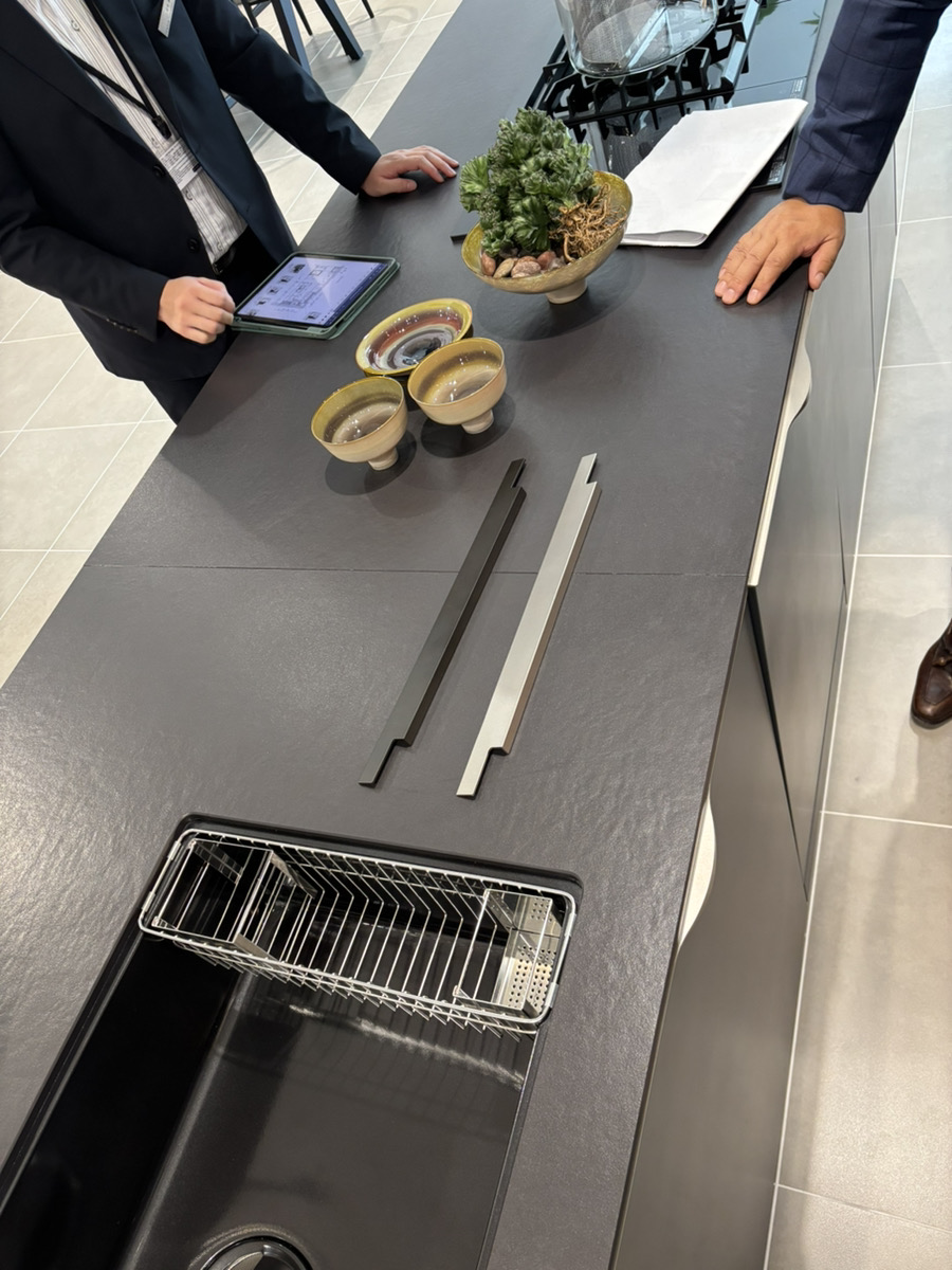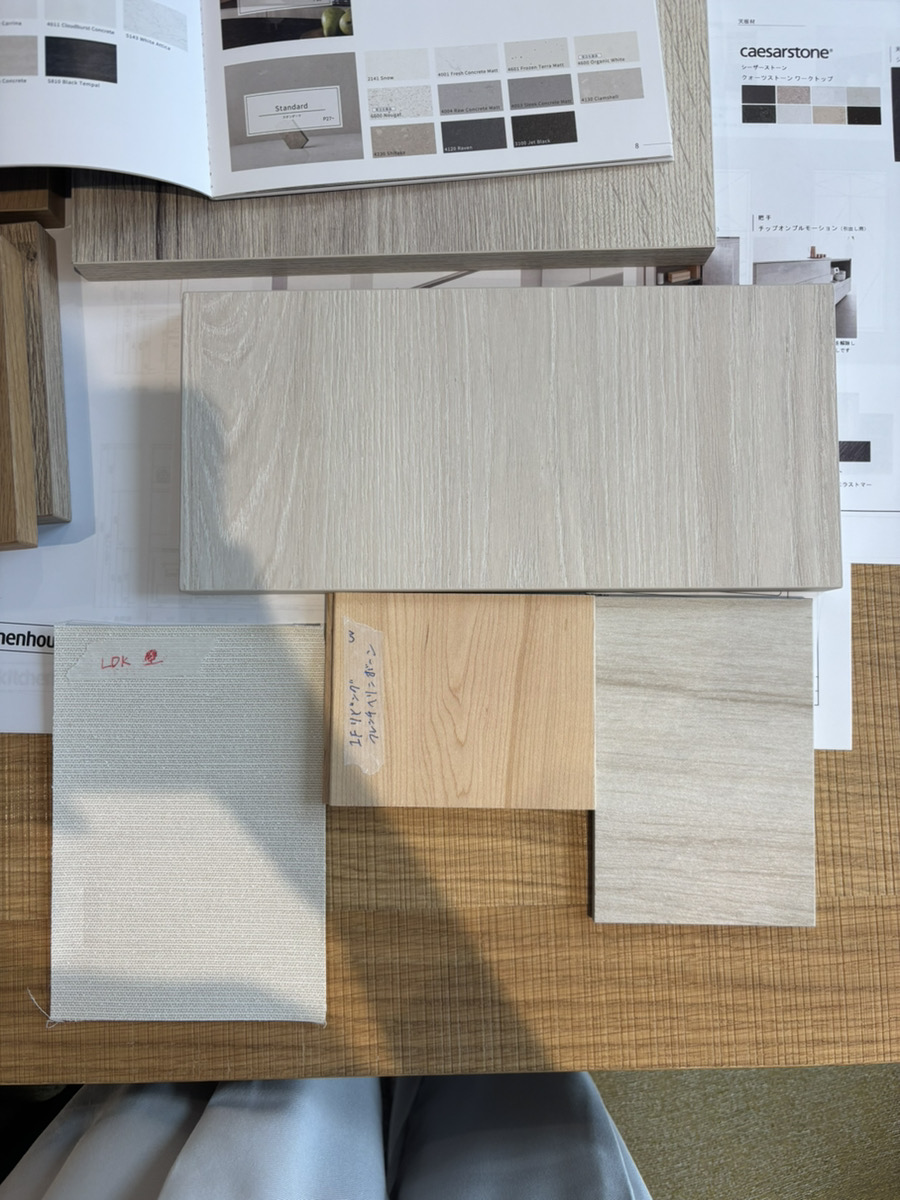 こちらは実際にキッチンの素材を選定している際の様子です。