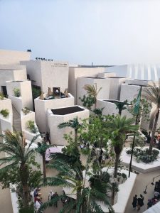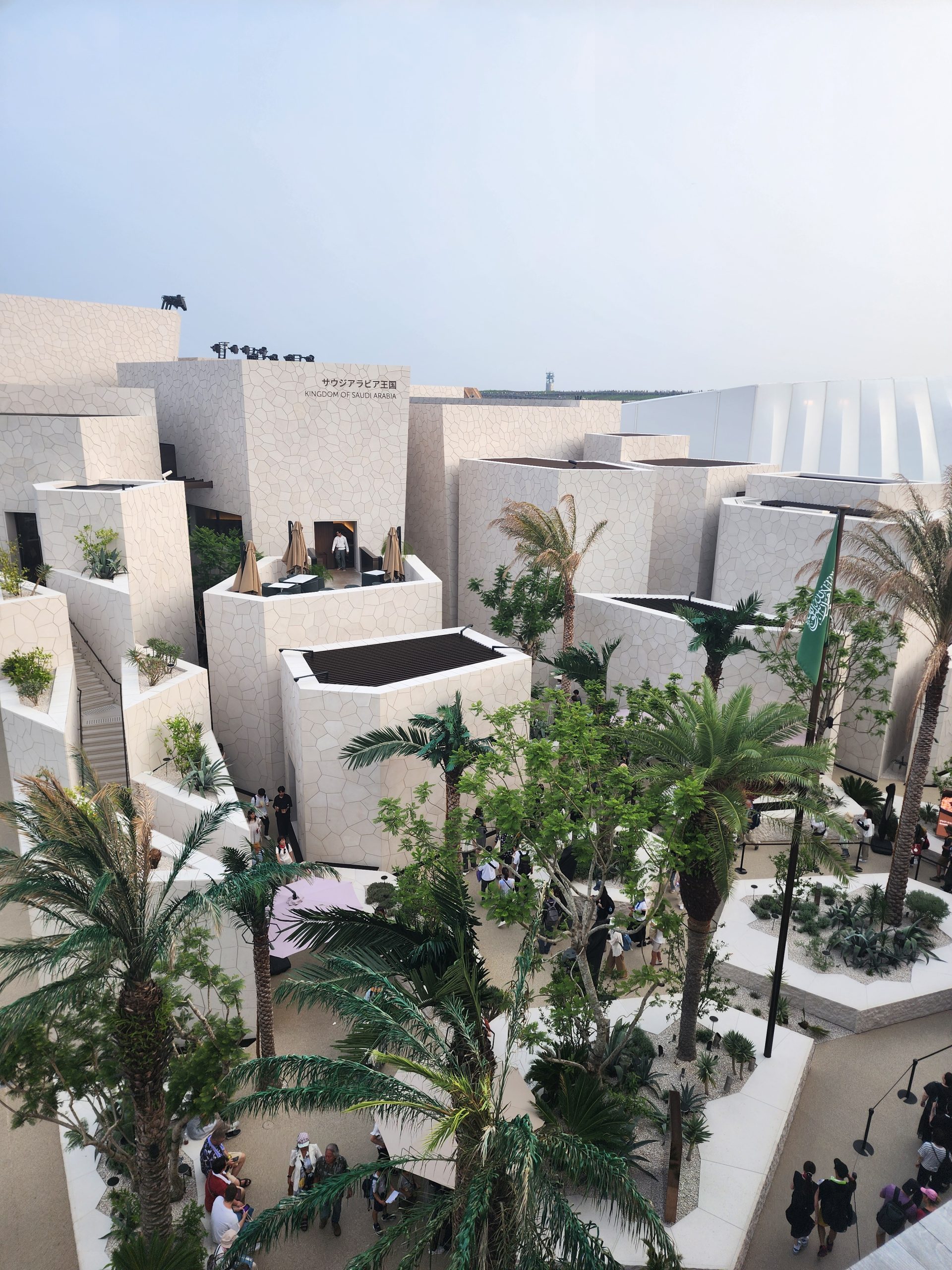 サウジアラビア館は、複数の建物がパズルのように配置され、その間を縫うように巡る独特な設計になっています。