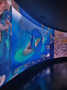 他には、巨大な半球形のスクリーンに映し出されるCG映像を通じて、地球がプラスチックごみに覆われていく様子や、汚染によって苦しむ海洋生物の姿が巧みに描写されています。
