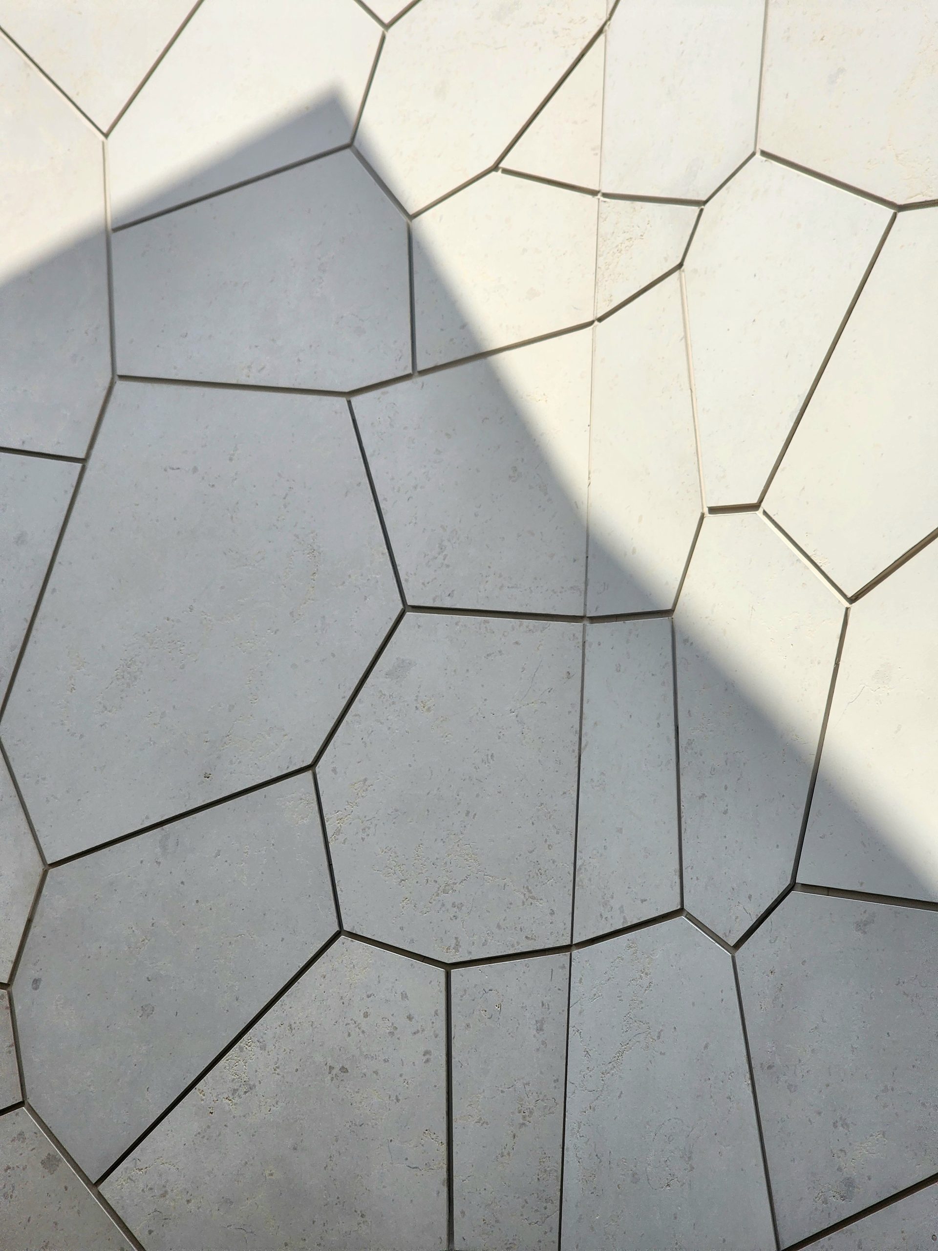 外壁はトラバーチン調の大判セラミックタイルで覆われており、日本にいながら